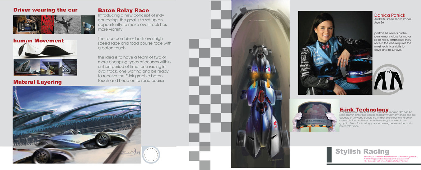 This project is the fantasy solution to enhance excitement to the fans of the Indy 500 race in the year of 2020. Key features are the distinctive Slide glide driving experience, and the concept of team relay race.